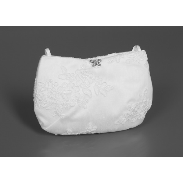 Popis produktu- svadobná kabelka- jemná čipka- štrasový motýlik- dostupná v bielej a ivory farbeZloženie-čipkaKód produktuT8Doba dodania1 týždeň
